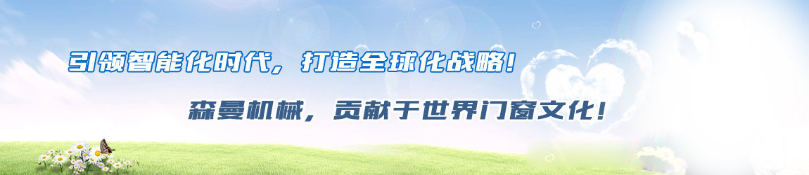 “森曼機械”作為全球門窗設(shè)備供應(yīng)商,本著"seaman"精神,勇立潮頭,拼搏創(chuàng)新,以爭做行業(yè)為目標(biāo),在行業(yè)前輩發(fā)展的基礎(chǔ)上,努力學(xué)習(xí),積極進取。目前公司產(chǎn)品涵蓋塑料門窗設(shè)備、鋁合金門窗設(shè)備、鋁幕墻設(shè)備、鋁木復(fù)合門窗設(shè)備及中空玻璃設(shè)備五大種類,近百個品種。公司產(chǎn)品銷售至全國各地及東南亞、非洲、東歐、北美等幾十個國家和地區(qū)。在這個競爭激烈的年代,我們正努力使我們的產(chǎn)品!